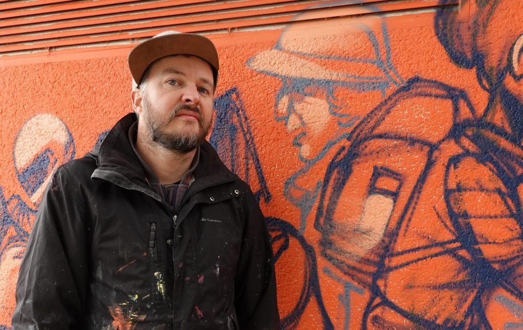 Lauréat du Prix du Graffiti 2021, l’Artiste nantais, Kafé Korsé a toujours été passionné par le dessin. D’ailleurs, l’univers de l’illustration est clairement perceptible dans sa peinture.