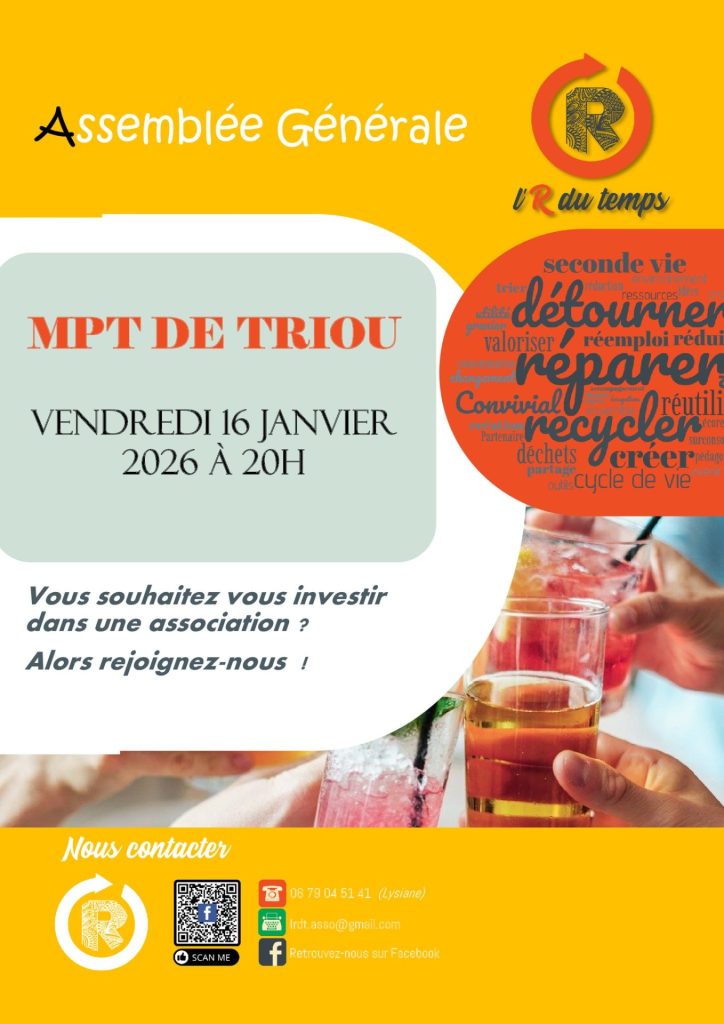 L’assemblée générale de l’association L’R du Temps se tiendra le 16 janvier 2026 à 20h à la MPT de Triou