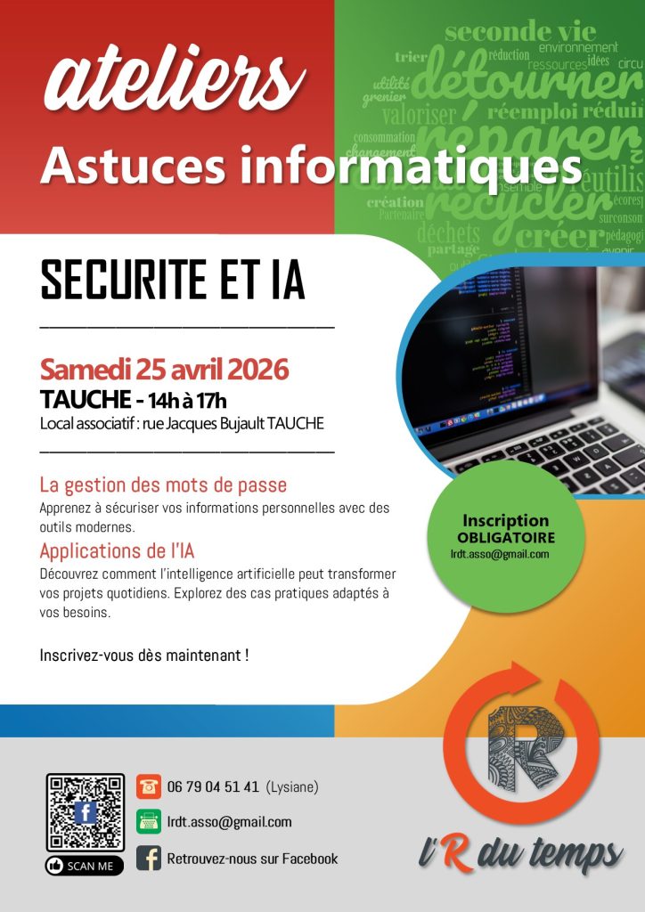 l’association L’R du Temps vous propose un atelier « Astuces Informatiques » sur les thèmes SÉCURITÉ ET IA :