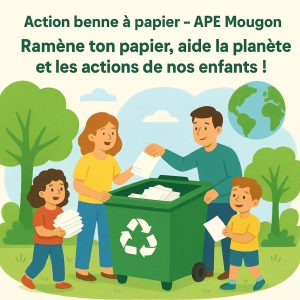 L’APE de Mougon mettra de nouveau à disposition une benne pour le recyclage du papier sur le parking de l’école maternelle de Mougon (place de la fruitière).