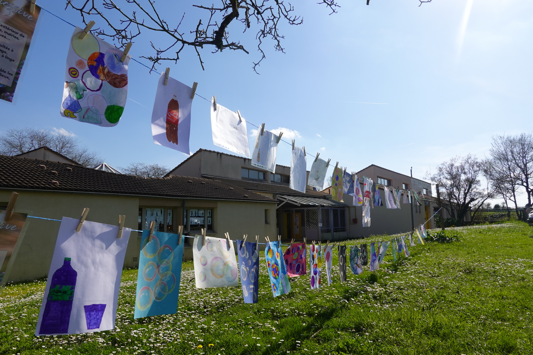 Les enfants, sur le thème « Faire des bulles ! », vont réaliser leurs œuvres sur format A4 qui seront épinglées avec des pinces à linge sur des fils tendus à proximité des écoles.
