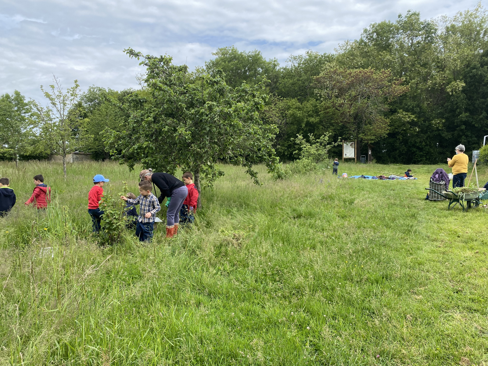 Après avoir enfilé bottes et pantalons de pluie, les enfants ont écouté avec attention les consignes de départ et ont pu ainsi prendre la route vers le verger communal de Chaloue.
