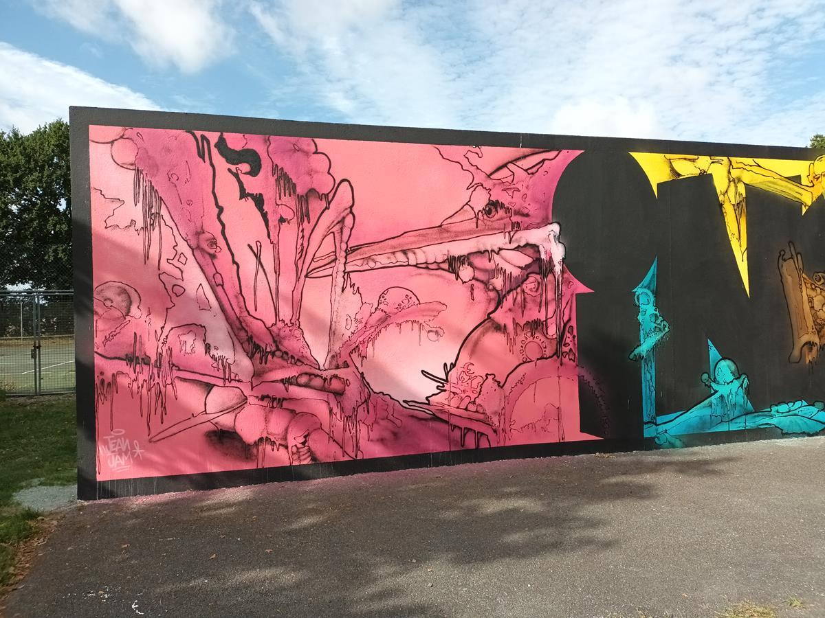 Après le passage de Kev Munday à Tauché, quatre artistes graffeurs viendront travailler en collaboration sur le mur d’expression situé à côté du stade René Gaillard de Mougon au cours de la semaine du 7 au 11 août.