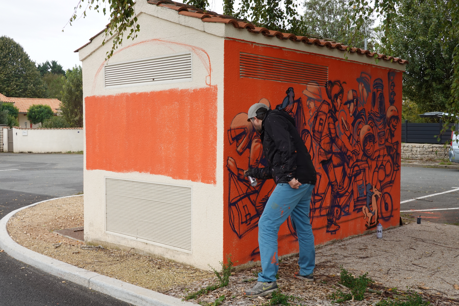 Cette semaine, le projet entre dans une nouvelle phase. De nouveaux artistes, tous représentés par KiGalerie, galerie d’art contemporain parisienne, seront à l’œuvre sur plusieurs sites. Armés de bombes de peinture et d’une créativité débordante ils habilleront les postes électriques de la commune. Chacun apportera son style, ses couleurs et ses messages, offrant une nouvelle identité visuelle aux rues aigondignoises.